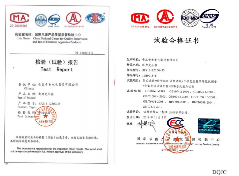 非晶合金干式電力變壓器檢驗檢測報告